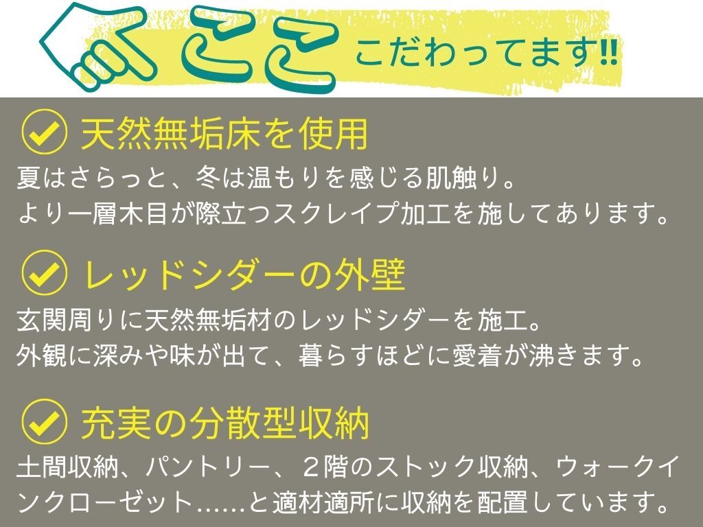 ■外壁、リビング、床は天然無垢の木材を使用した心地よいデザイン