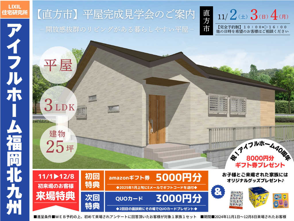 | タイトル | 【アイフルホーム福岡北九州店】直方市|平屋|3LDK|25.25坪|完成見学会 |