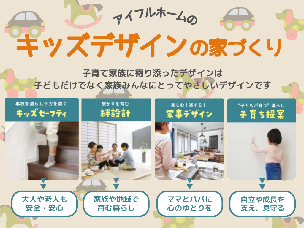 アイフルホーム福岡北九州店のモデルハウスは、アイフルホームの特徴であるキッズデザインが体感できます。同一敷地に2棟のタイプが異なる展示場がございますので是非どちらの展示場もご覧ください。