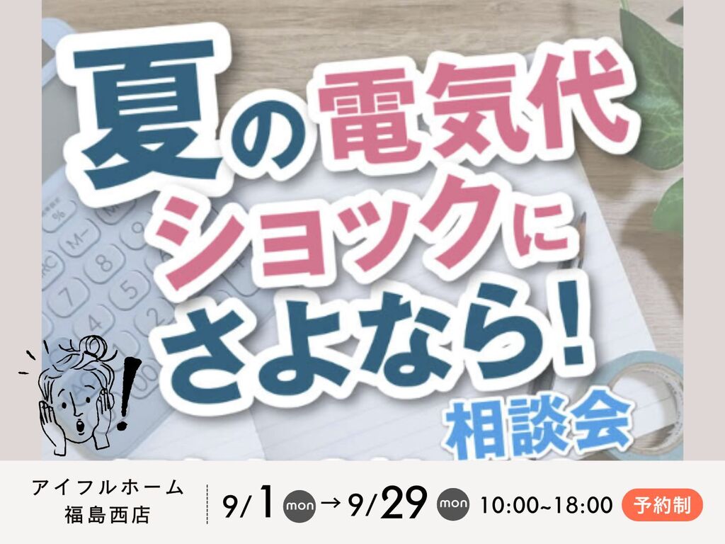 タイトル | 【福島西店】夏の電気代ショックにさよなら!住まい相談会|太陽光+高断熱で来年の夏は快適&省エネに。 |