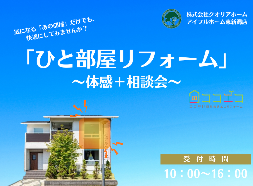 | タイトル | 「ひと部屋リフォーム」体感+相談会 |