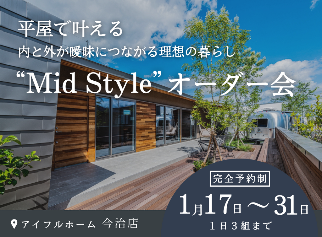 | タイトル | 平屋で叶える内と外が曖昧につながる理想の暮らし“Mid Style”オーダー会 |