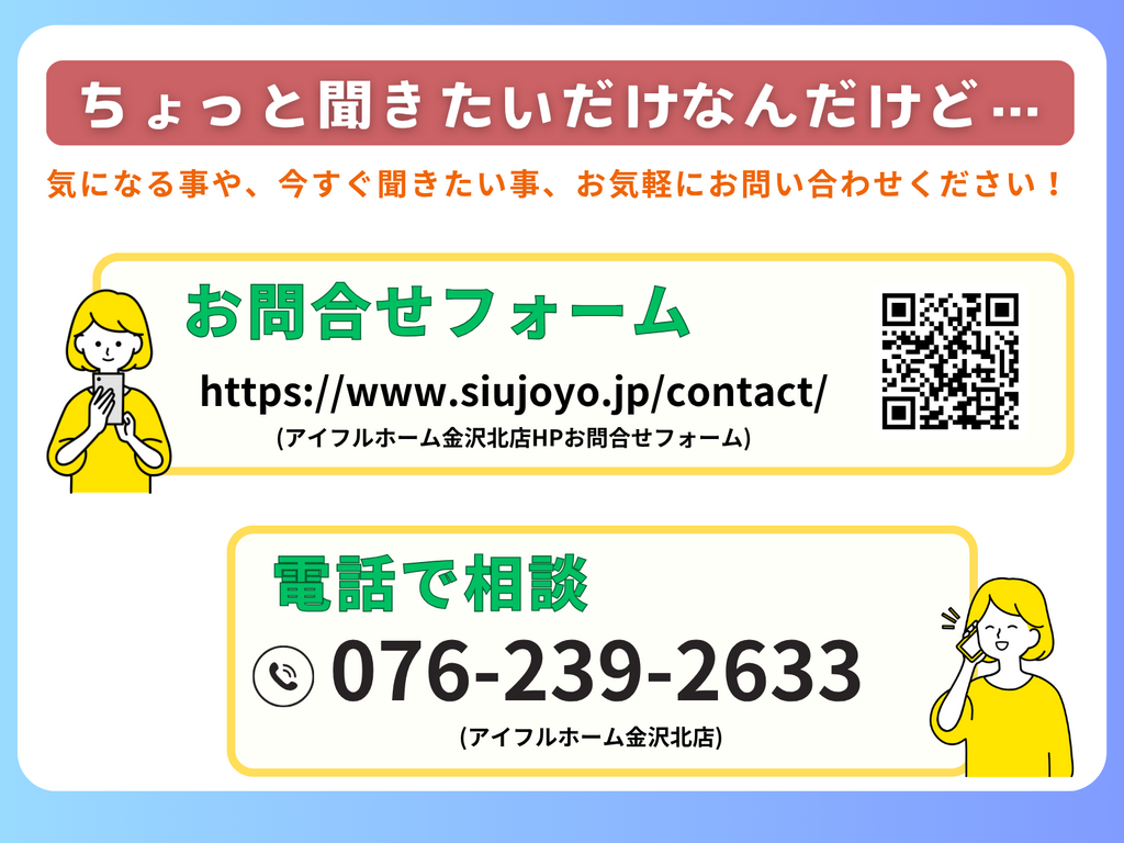 | タイトル | 能登エリアの住まいづくり、アイフルホームがお手伝いします |