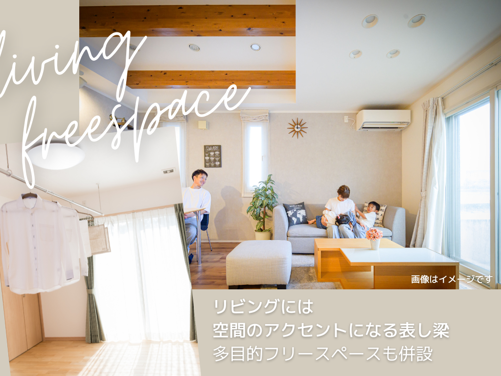 リビングには空間のアクセントになる表し梁も!