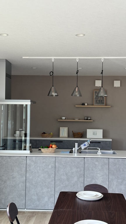 キッチン周りには1枚棚や収納や動線にこだわっています。