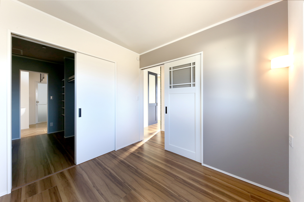 寝室の隣に併設されたWICは寝室からはもちろん、朝の洗顔後脱衣室からもWICへも移動できるので混雑しづらく無駄な移動を省くことができます。