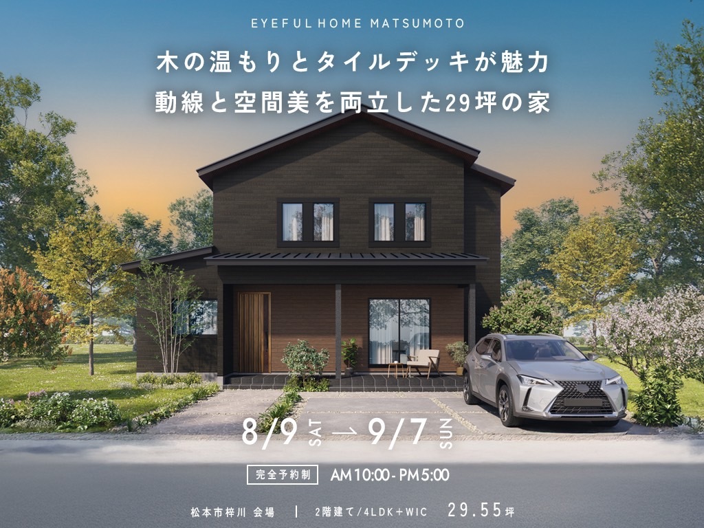 【松本市梓川会場】木の温もりとタイルデッキが魅力 動線と空間美を両立した29坪の家《完成見学会》