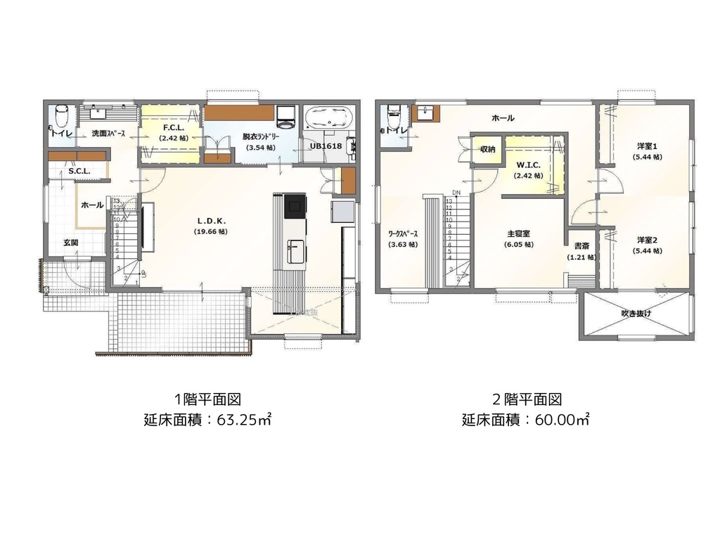 (1F:63.25㎡+2F:60.00㎡)37.28坪