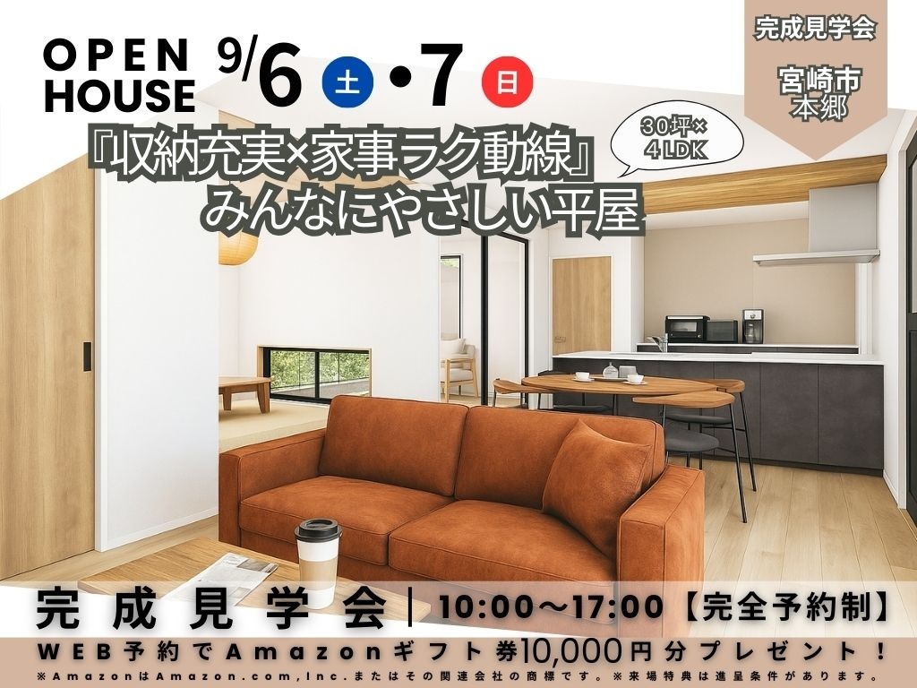 宮崎市本郷にて9月6日(土)・7日(日)の2日間限定で特別な『完成見学会』を完全予約制で開催します!