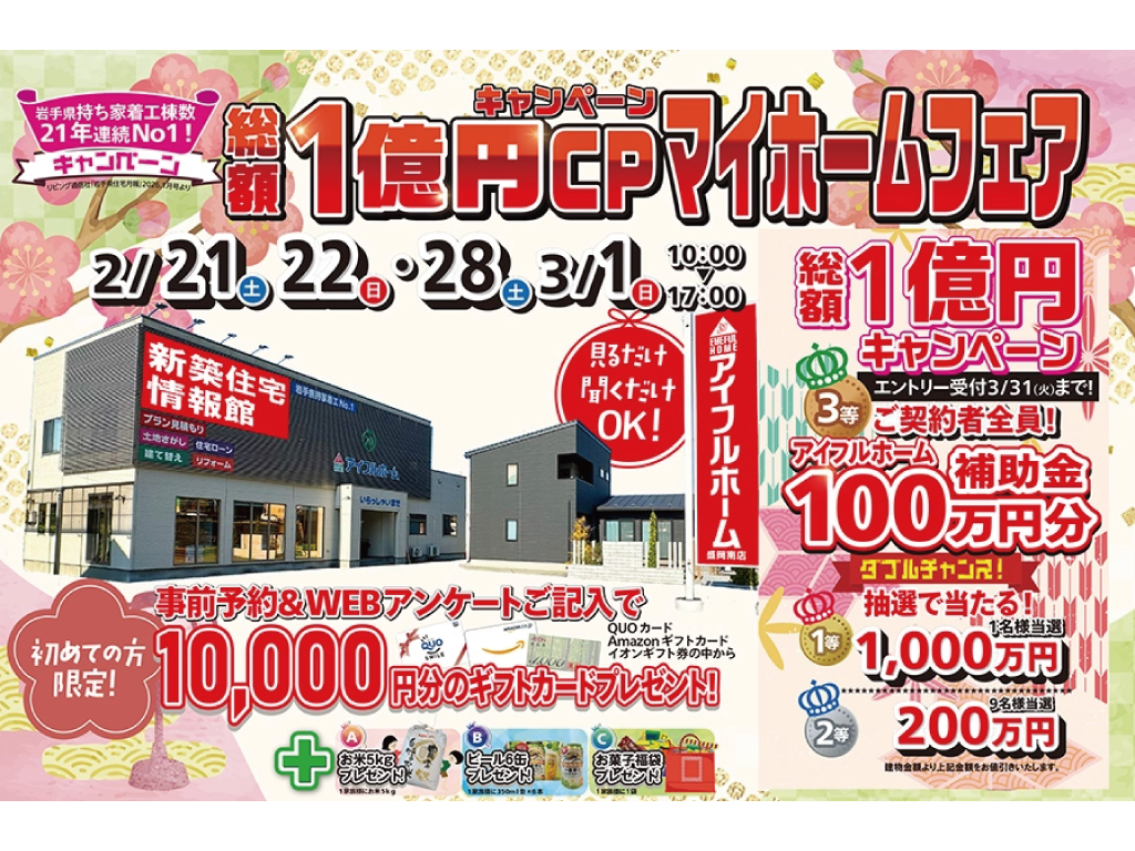| タイトル | 【盛岡南店】総額1億円キャンペーン!マイホームフェア |