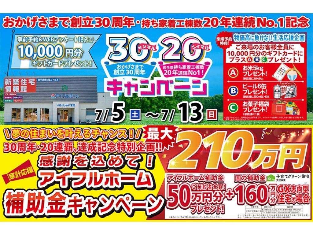 | タイトル | 【盛岡南店】おかげさまで創立30周年!持ち家着工棟数20年連続1位達成記念キャンペーン! |