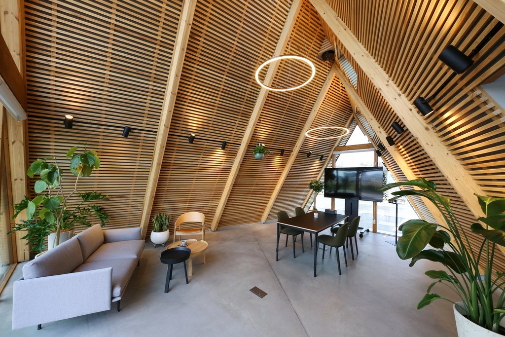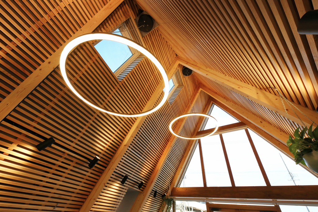 大小2つの山型状の2棟を連結させた建物は、片方を【住育】【木育】【食育】【教育】に関連するさまざまなイベントを行うスペースになり、地域の皆様とのコミュニティの場として活用していきます。