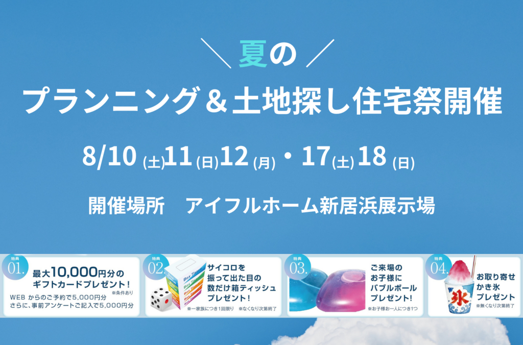 | タイトル | 【新居浜展示場】夏のプランニング&土地探し住宅祭 |