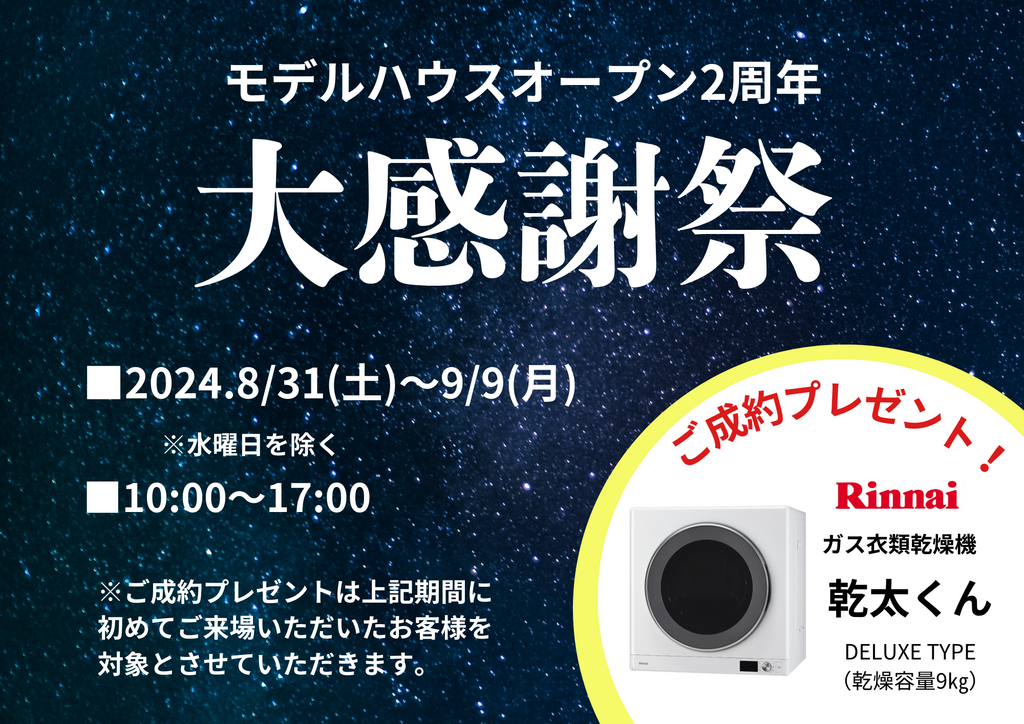 | タイトル | 【新居浜展示場】モデルハウスオープン2周年大感謝祭 |