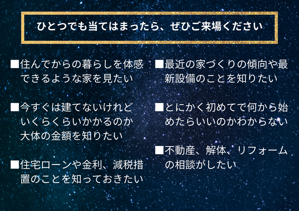 ①弊社建築エリアでマイホームを5年以内でお考えの方(リフォームは対象外)