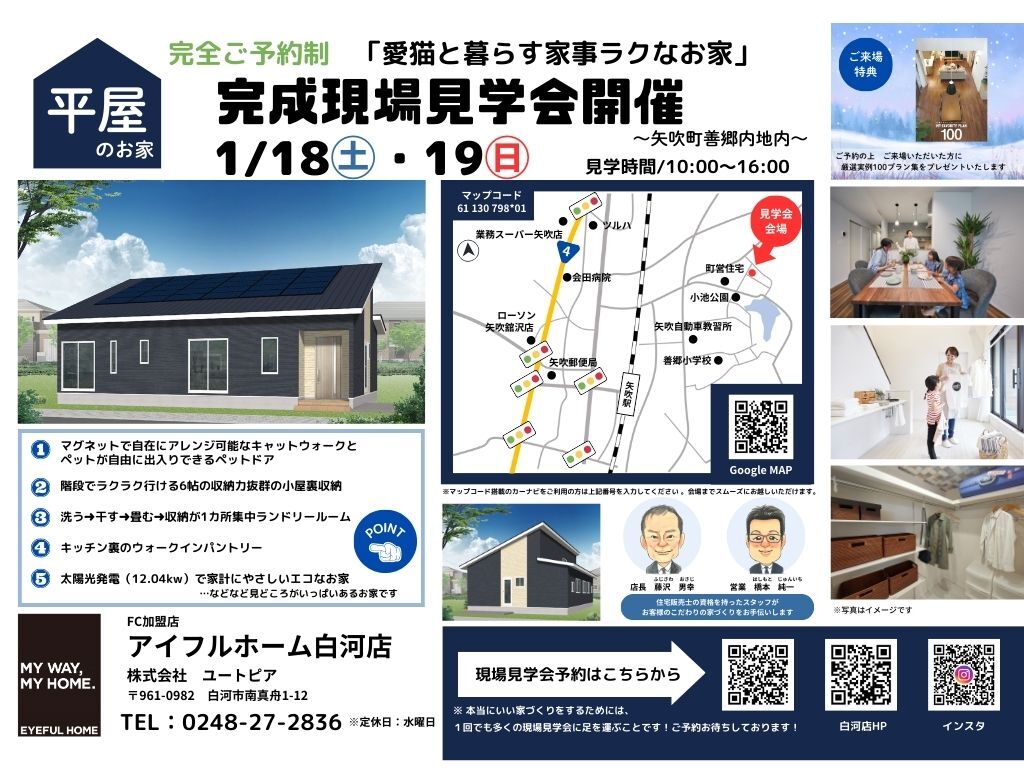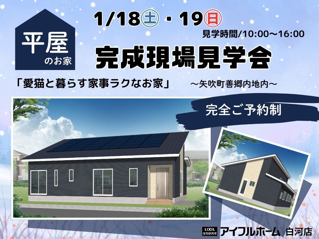 | タイトル | 【白河店】平屋のお家 「愛猫と暮らす家事ラクなお家」完成現場見学会~矢吹町善郷内地内~ |