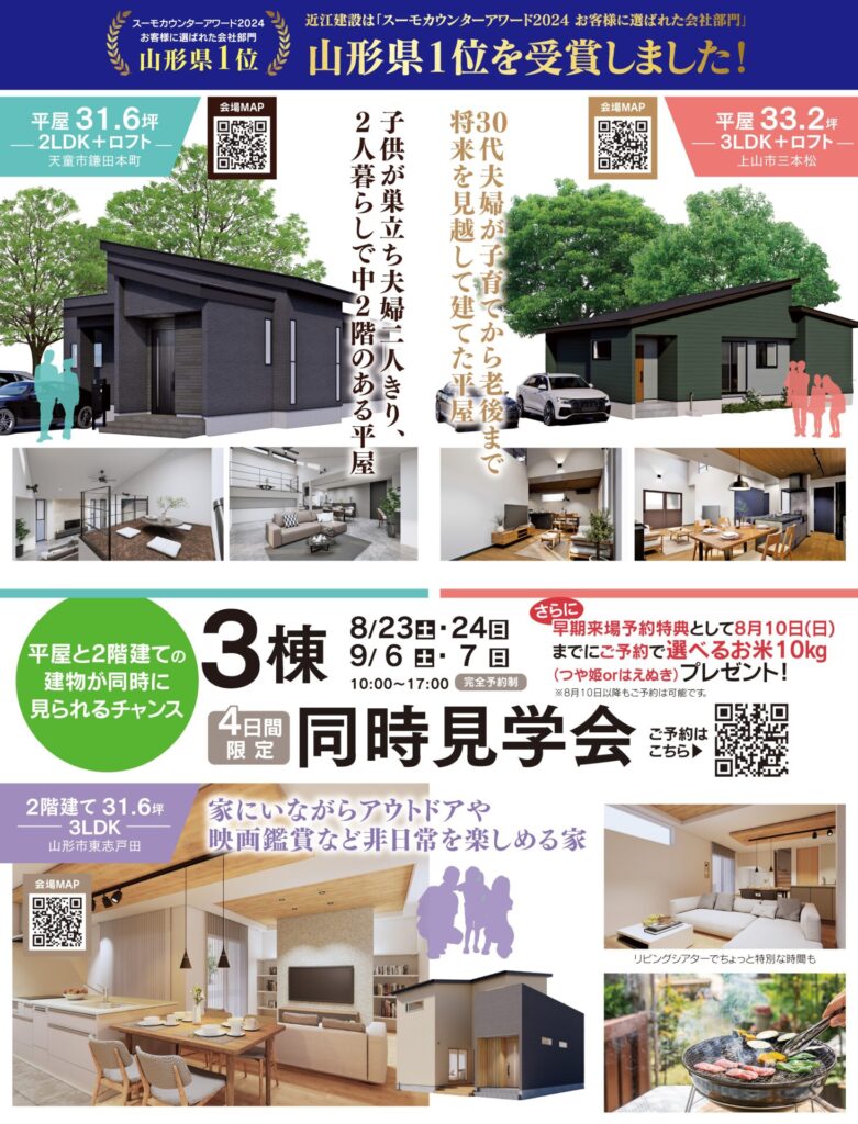 8月23日(土)・24日(日)と、9月6日(土)・7日(日)の4日間限定で、3棟同時見学会を開催!