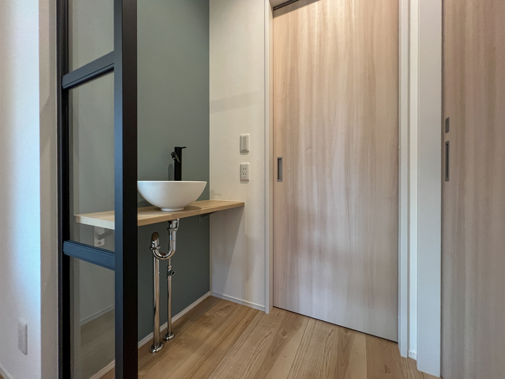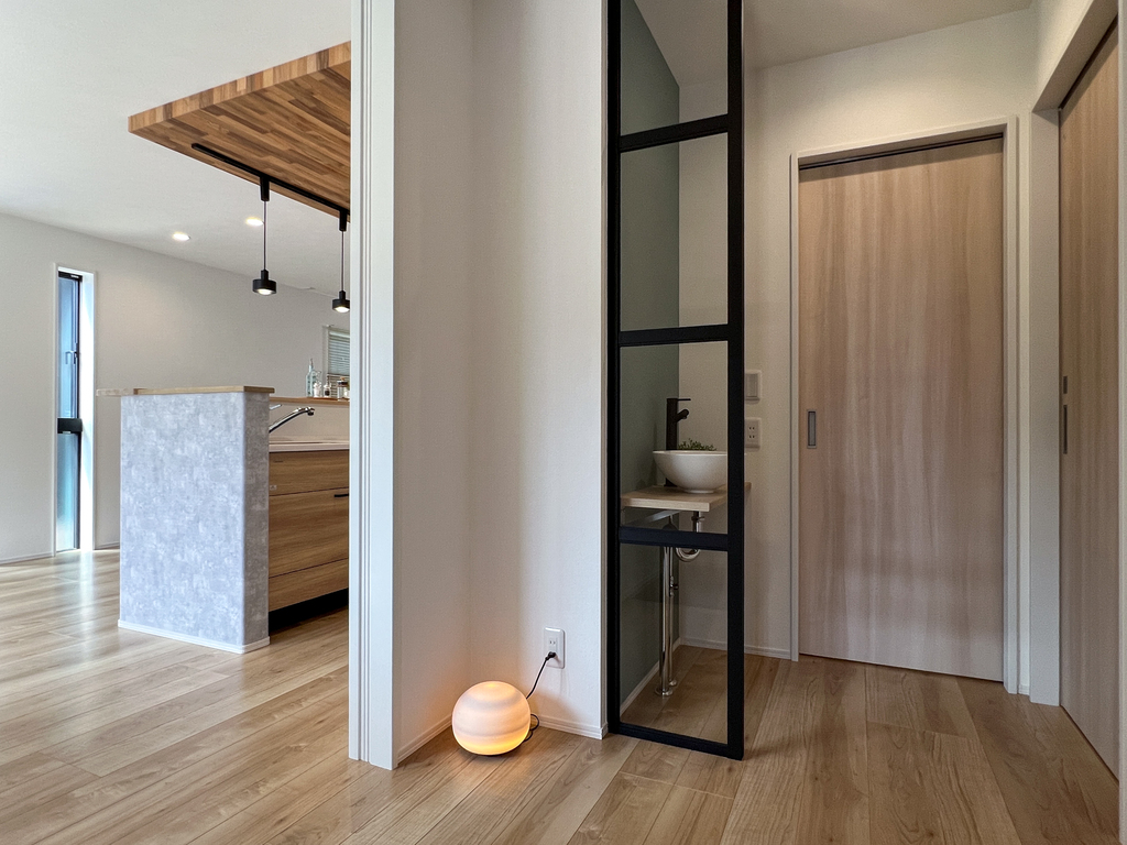 帰宅後すぐに使える“ただいま手洗い”で衛生的。来客時にも生活空間を見せずにスマートなおもてなしが可能。
