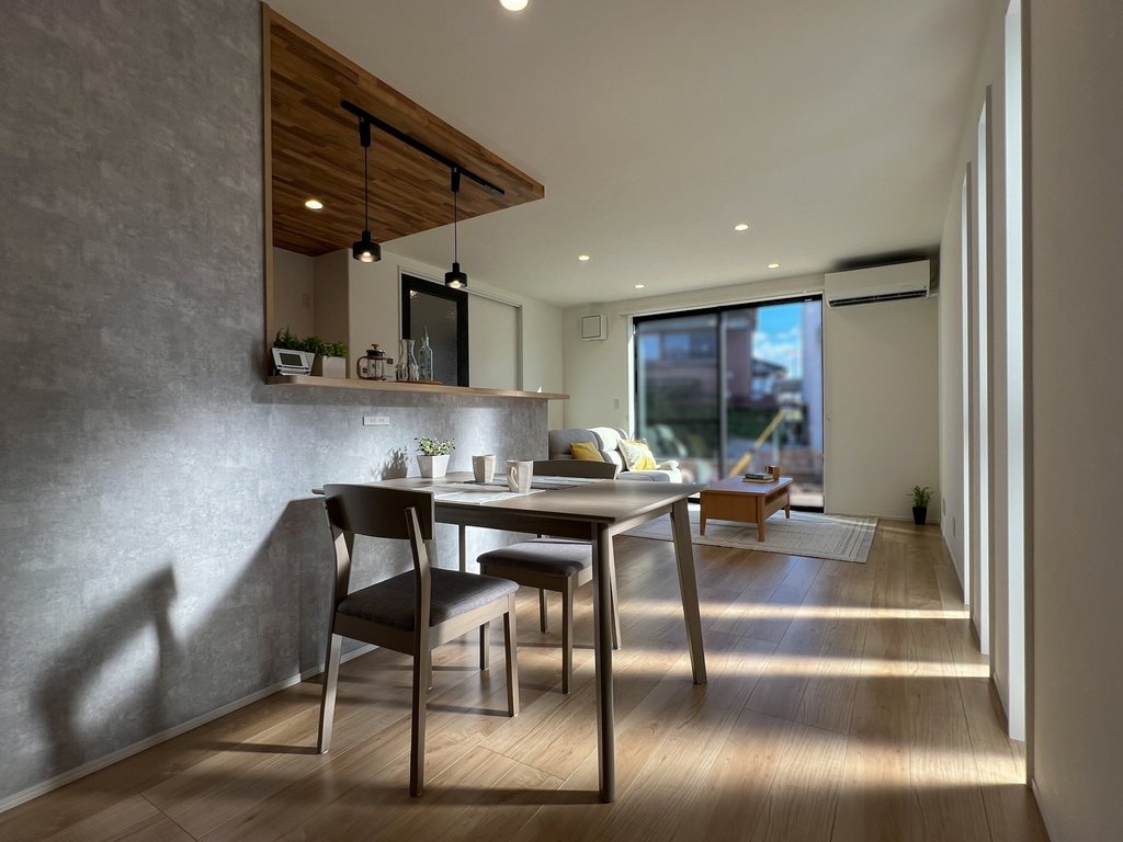 15.3帖のLDKにスリット窓が並ぶスタイリッシュな採光設計。