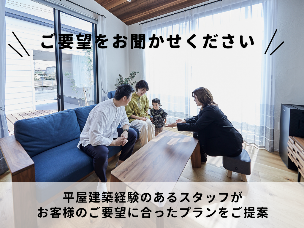 平屋建築実績豊富なプロスタッフが丁寧にご対応します