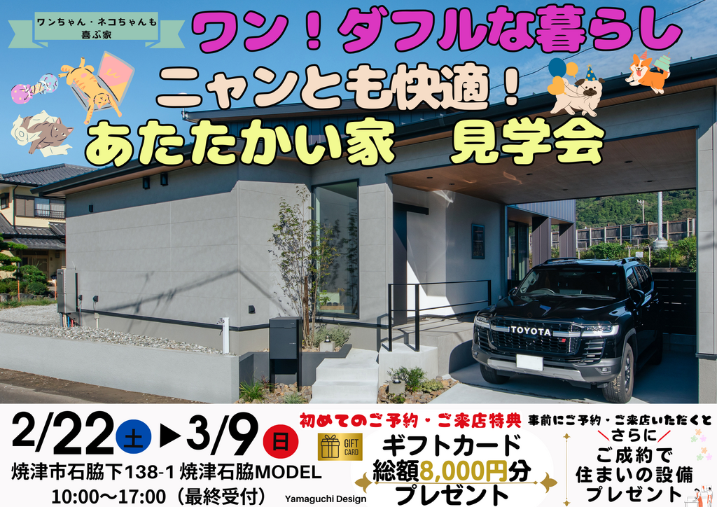 | タイトル | 焼津市石脇MODEL🏠ワンちゃん・ネコちゃんもあたたかい快適な家見学会 |