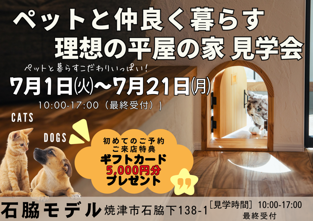 | タイトル | ペットと仲良く暮らす理想の平屋の家見学会 |