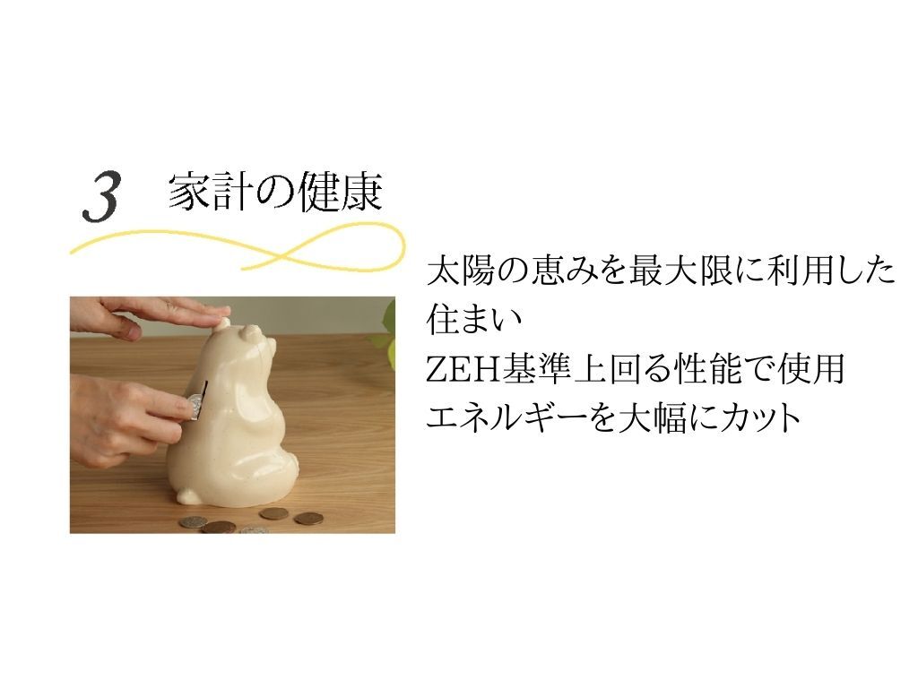 私たちe暮らすホームでは、家族の健康、建物の健康、家計の健康、地球の健康の「4つの健康」を実現しています。