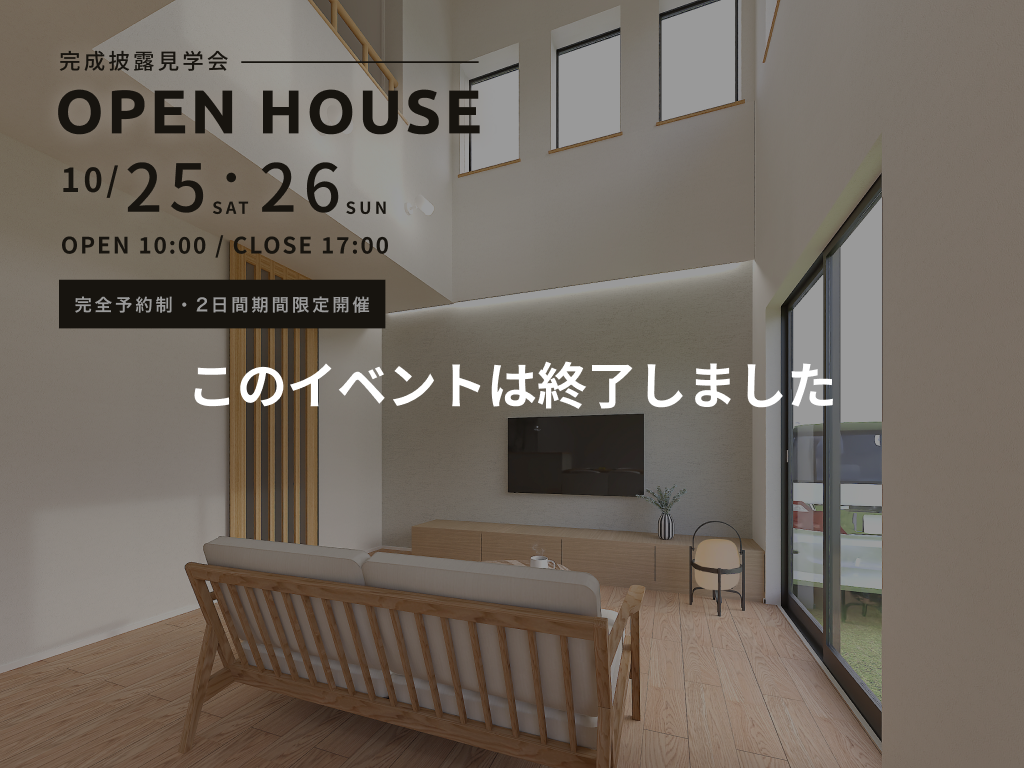 | タイトル | 完成見学会 | 視覚的にも体感的にも自然を感じられる家(※モニターキャンペーン同時開催中!) |