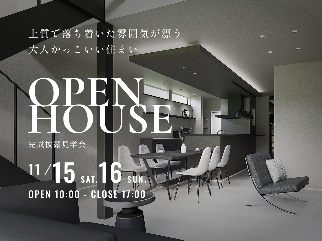 | タイトル | 完成見学会 | 上質で落ち着いた雰囲気が漂う、大人かっこいい住まい。 |