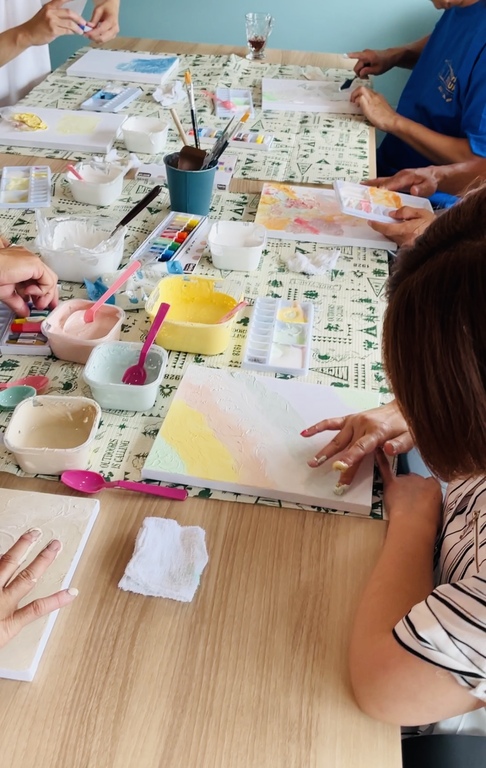 マシュマロタッチ(塗り壁材)に絵の具をまぜてキャンバスに指で自由に描こう!!