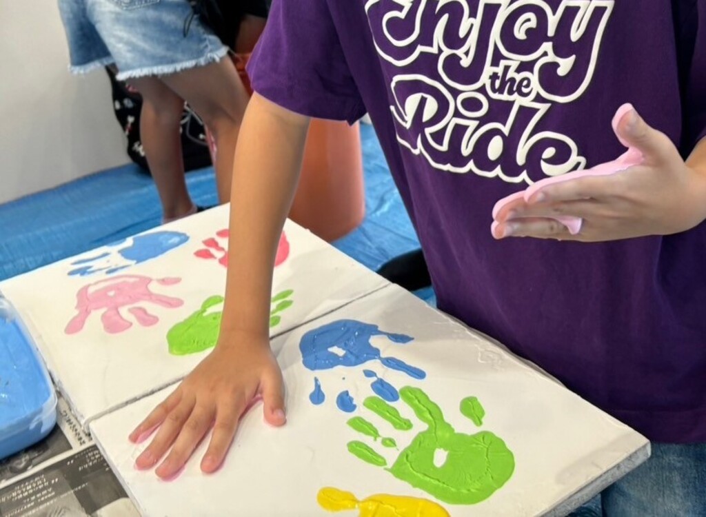 マシュマロタッチ(塗り壁材)を塗ったキャンバスに手形をぺったん!