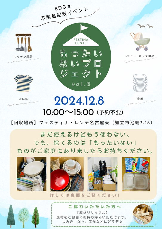 | タイトル | 第4回SDGs不用品回収イベント もったいないプロジェクト 【名古屋東エリア】 |