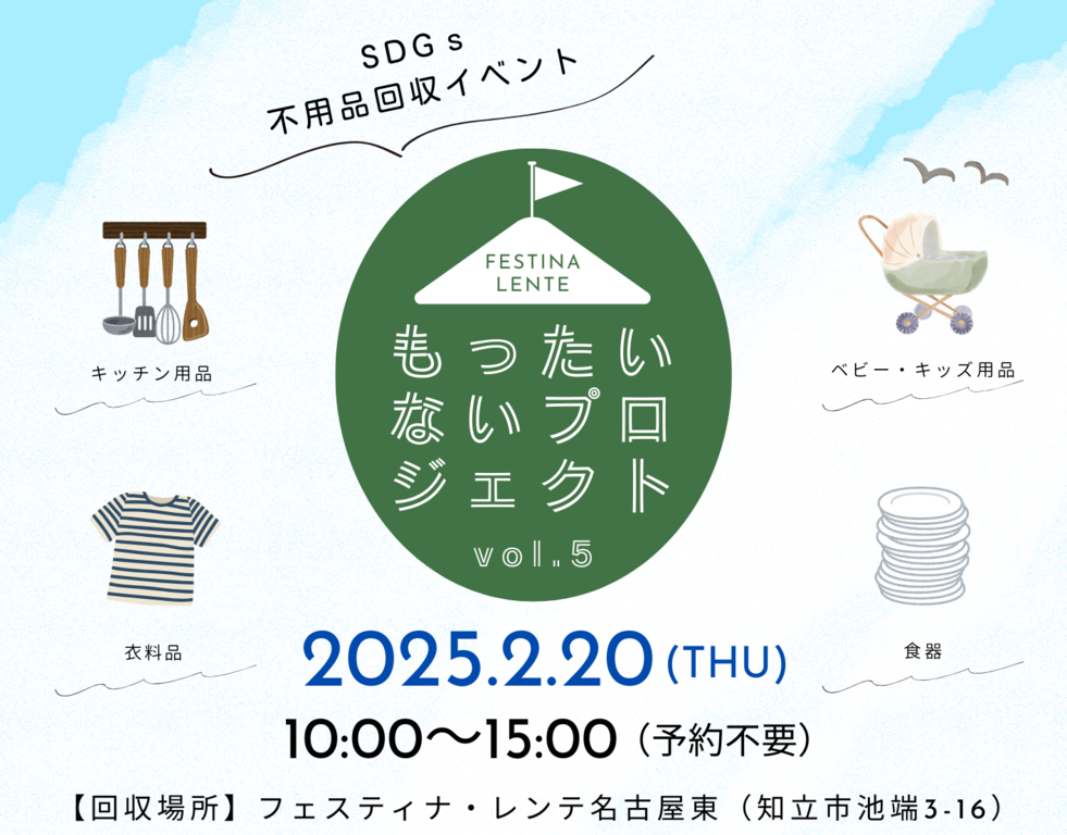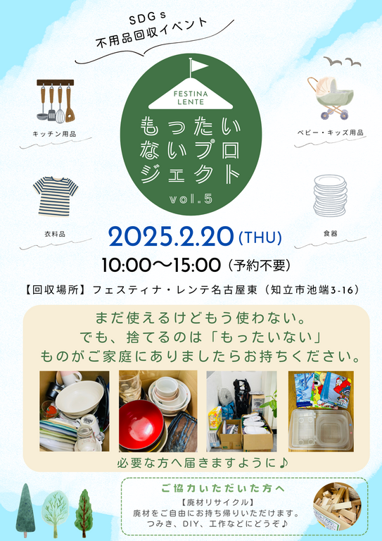 | タイトル | 第5回SDGs不用品回収イベント もったいないプロジェクト 【名古屋東エリア】 |