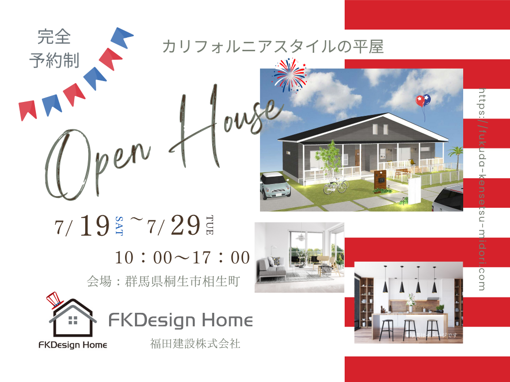 | タイトル | 【完全予約制】大人気!カリフォルニアハウス完成見学会! |