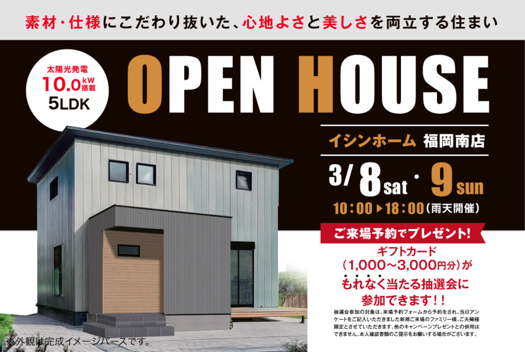 | タイトル | 久留米市津福本町 3/8・9 完成見学会 |