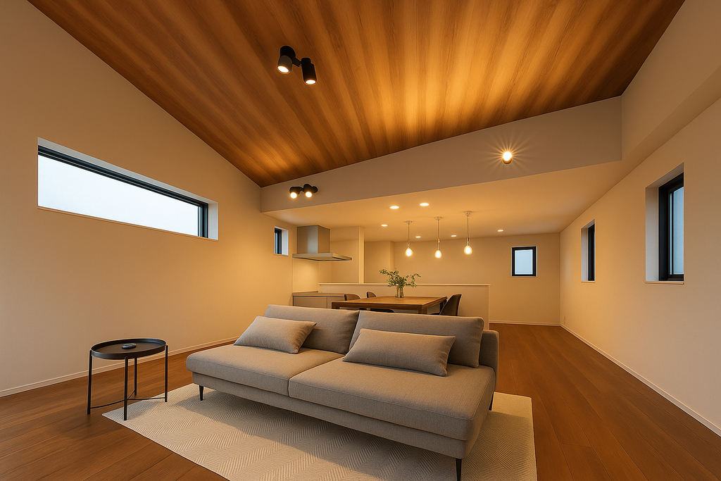 - 勾配天井を採用することでおしゃれで開放感のある心地よいリビング