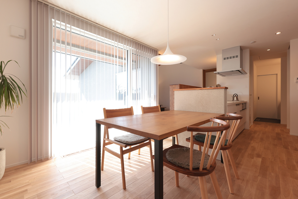 - 大きな掃き出し窓を抑えることでプライバシーを確保し、のびのびと家族の時間を過ごせる