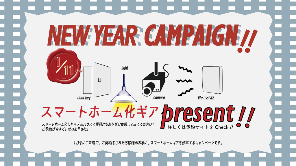 | タイトル | 【新春】スマートホーム化キャンペーン!新築にスマートホーム化ギアプレゼント |