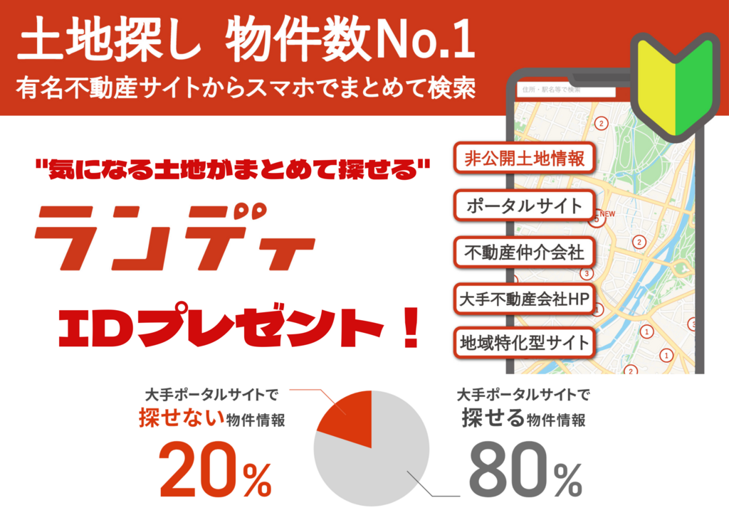 ご希望の方には、全国の不動産情報と建築条件を一括で確認できる最新の土地検索ツール【ランディ)ID】もプレゼント!