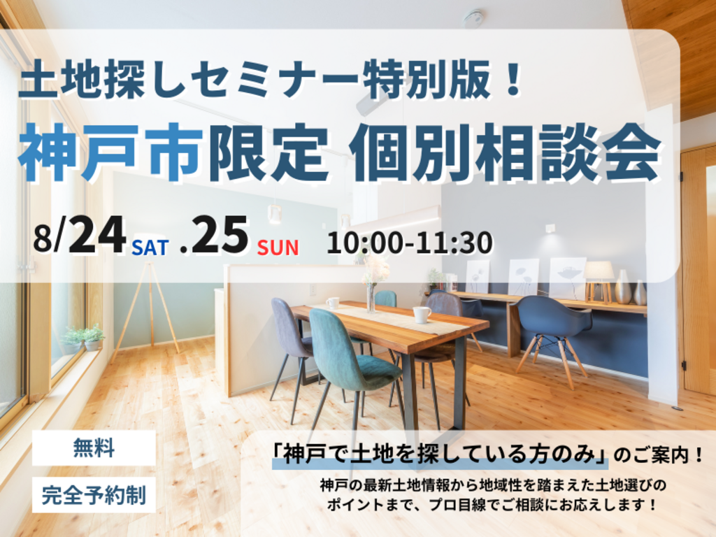 | タイトル | 【兵庫・神戸】特別版!神戸市限定 土地探し個別相談会 |