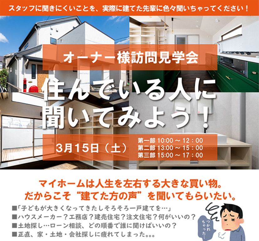 | タイトル | 3/15(土)【国分寺市:オーナー様邸訪問見学会】住んでいる人に聞いてみよう |