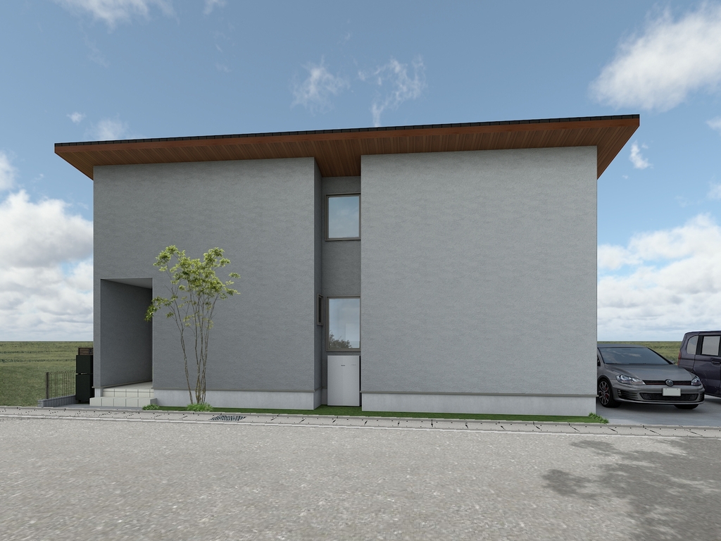 外張り断熱+塗り壁仕上げの外観が映える