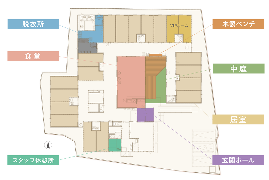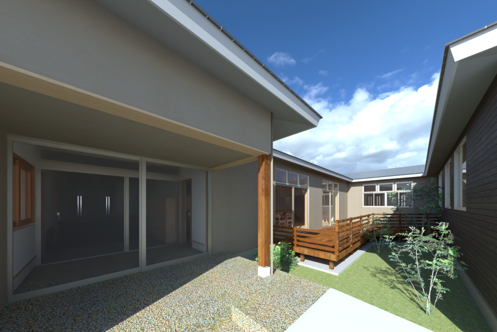 中庭のある平屋建ての住宅型有料老人ホーム施設