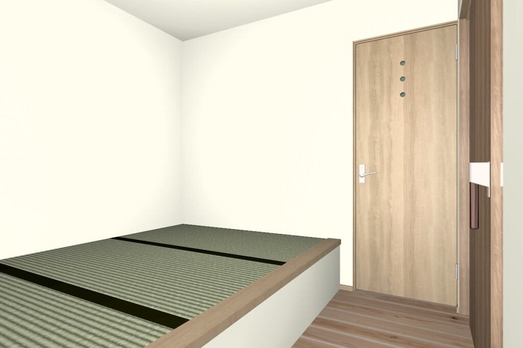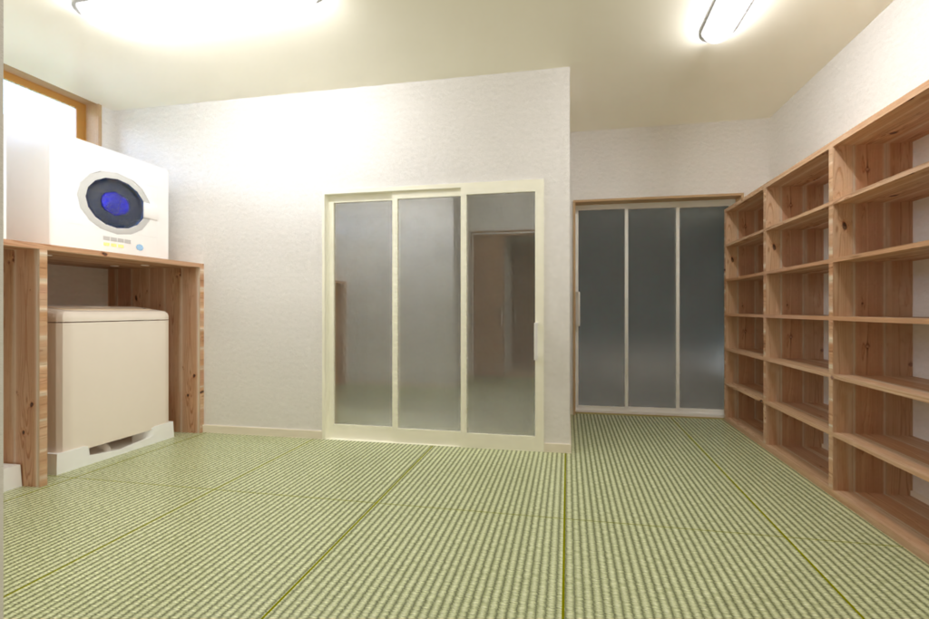 柔らかく濡れても大丈夫な仕様の畳敷きの脱衣スペース。