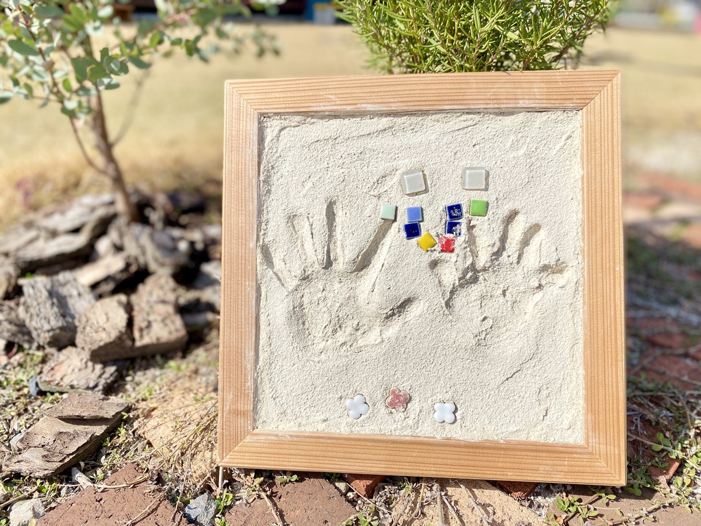 自然素材の湯布珪藻土を使って手形アート♩
