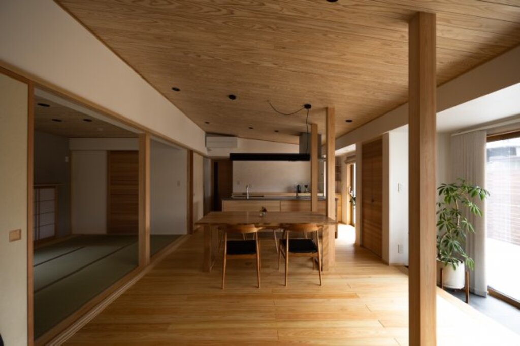 廊下のない一体的な空間で、自然通風が確保できる平屋の間取り。