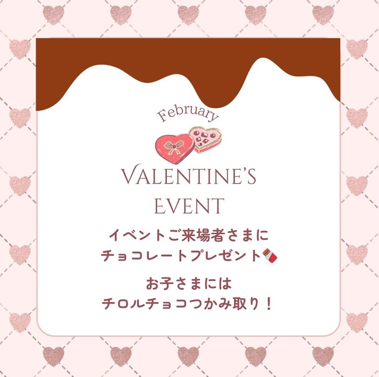 期間中にご来場いただけたお客さまにはチョコレートのプレゼントとお子さまにはチロルチョコのつかみ取りをご用意いたしております。