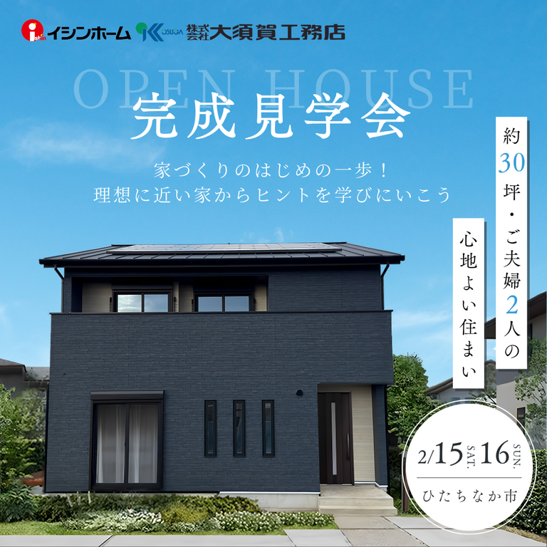 | タイトル | 【期間限定】2月15日(土),16日(日)ひたちなか市にて完成見学会開催! |