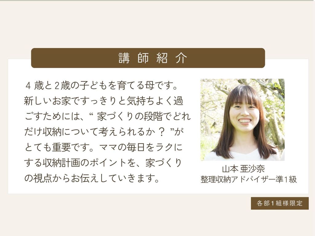 | タイトル | 暮らしを楽にする「 家づくり収納セミナー 」 |