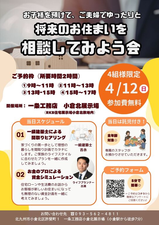 あなたの夢を実現する家づくり限定4組! 託児付き・間取り設計・ライフプラン相談会!!